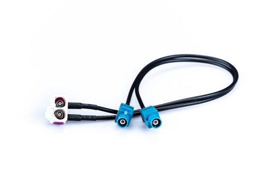 Złącze umożliwiające podłączenie radia z podwójnym zespolonym złączem antenowym FAKRA do fabrycznej instalacji antenowej zakończonej złączem FAKRA rozdzielonym.