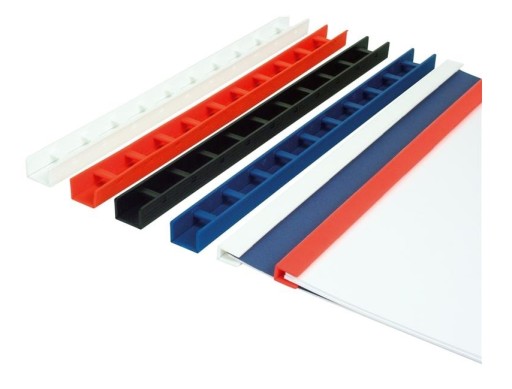 - jednoelementowe, składane listwy plastikowe do oprawy dokumentów