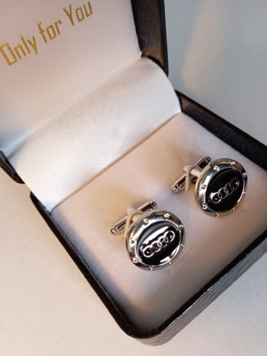 Piękny oryginalny zestaw pary spinek do mankietów koszuli marki Exciting, z ekskluzywnej limitowanej serii Only for You Audi. Spinki wykonane zostały z metalu szlachetnego i pomalowane emaliami akrylowymi z logiem Audi. Spinki są zapakowane w eleganckie pudełko, etui do przechowywania w najwyższym standardzie jakości firmy EXC.