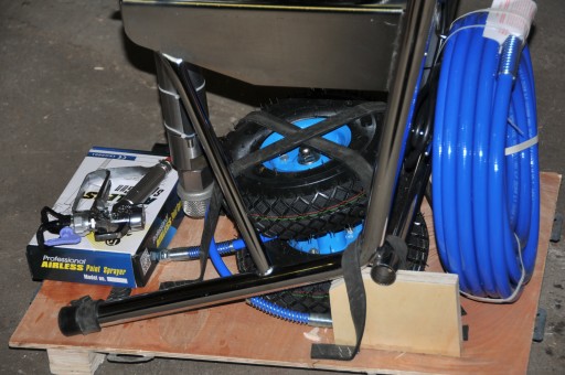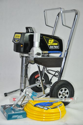 Można nim znakomicie malować duże powierzchnie,służy do prac remontowych i wykończeniowych .Urzadzenie pracuje w systemie AIRLESS czyli systemie bezpowietrznym.Urzadzenie wraz z wózkiem dwoma wężami oraz dwoma pistoletami waży 55 kg,łatwe w transportowaniu ,dzięki zamonowanemu wózkowi.Można malować wszystkimi farbami wodorozcieńczalnymi i rozpuszczalnikowymi:lateksowymi,akrylowymi,emulsjami,lakierami,epoksydami,farbami ognioodpornymi,antykorozyjnymi,służy do rozpylania gładzi gipsowych i wszystko o różnej gęstości zalecanymi przez producenta.W skład zestawu wchodzi agregat ,1 wąż 15m 3/8",1 pistolet malarski,jedna dysza (521"),przedłużka 50 cm ,stojak na kółkach.
