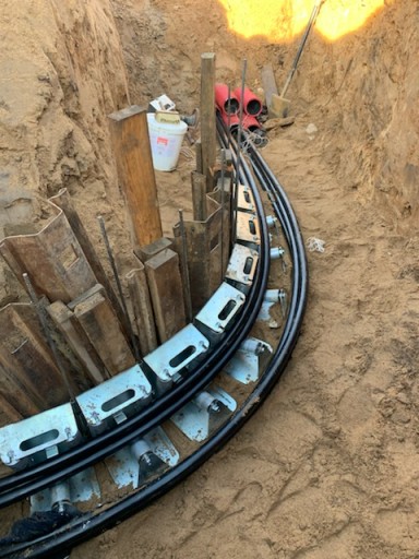 - Im więcej rolek na zakręcie, tym mniejsze obciążenie rolek i łatwiejsze wciąganie kabla (wiązki kabli)