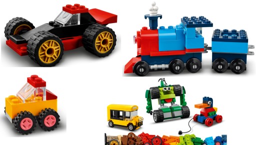 W zestawie jest dziewięć inspirujących modeli na kołach oraz sporo dodatkowych klocków i elementów, które zapewnią dzieciom, ich przyjaciołom i rodzinom niezliczone godziny dobrej zabawy.