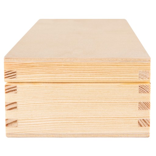 EUROPEJSKIE DREWNO I SKLEJKA SOSNOWA - Lekkie pudełko o grubości ścianki ok. 1 cm + podstawa ze sklejki 3mm. Zapach drewna, który wydobywa się z opakowania, przypomina o tym, że używasz naturalnego, certyfikowanego drewna.