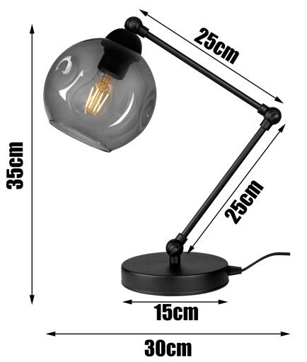 Designerska lampka biurkowa ze szklanym kloszem KULA 1xE27