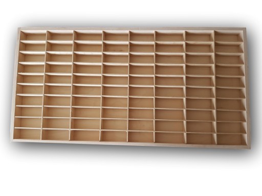Przedmiotem aukcji jest solidny półka drewniana z przegródkami.