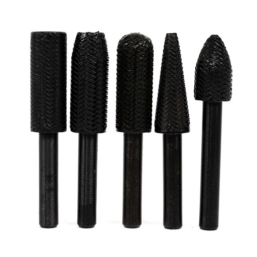 Zestaw pięciu tarników trzpieniowych przeznaczonych do podstawowej obróbki drewna, plastików oraz innych podobnych miękkich materiałów.