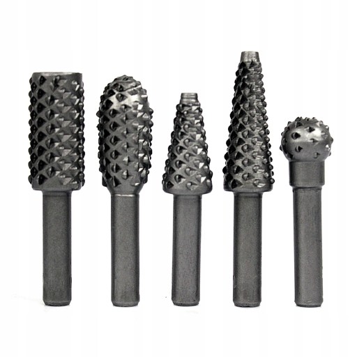 Zestaw pięciu tarników trzpieniowych przeznaczonych do podstawowej obróbki drewna, plastików oraz innych podobnych miękkich materiałów.