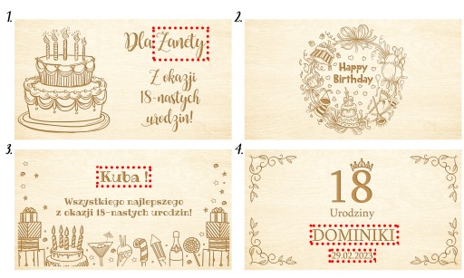 Po dokonaniu zakupu pamiętaj o przesłaniu informacji o wybranym wzorze oraz danych niezbędnych do personalizacji. Czerwoną ramką zaznaczono miejsce podlegające zmianom.