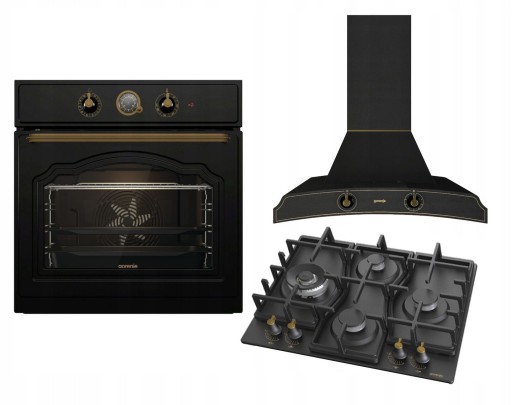 Комплект бытовой техники РЕТРО с газовой варочной панелью GORENJE, черный матовый
