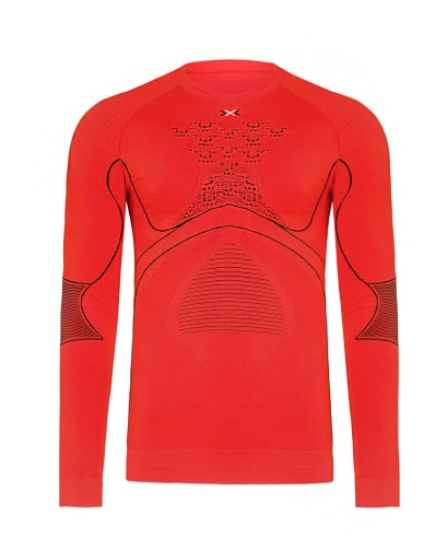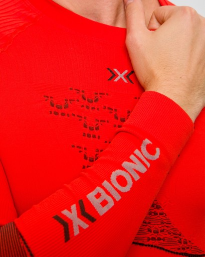 Niedościgniony wzór termoregulacji ciała na rynku odzieży sportowej. Dzięki zaawansowanym technologiom X-BIONIC wspomaga organizm w utrzymywaniu stałej temperatury ciała 37 stopni w każdych warunkach. Kiedy się pocimy - chłodzi utrzymując warstwę wilgoci w strategicznych miejscach, kiedy marzniemy - izoluje przed zimnem wykorzystując uwięzioną w specjalnych strefach warstwę ciepłego powietrza. Dzięki temu zaoszczędzisz mnóstwo energii, którą możesz przeznaczyć na sport i dobrą zabawę. To koszulka kompresyjna, której działanie przyspieszy regenerację mięśni i stanowić będzie dodatkową ochronę przed kontuzjami. Kilkanaście patentów X-BIONIC sprawia że nie ma na rynku bardziej funkcjonalnej a za razem superkomfortowej odzieży. Koszulkę wyposażono w rewolucyjną kompresję strefową oraz opatentowany system 3D Bionic Sphere® z technologią ThermoSyphon® optymalizującą wydajność dzięki lepszemu chłodzeniu. Kompresja: wysoka, izolacja: wysoka.