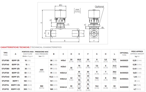 Gwinty wewnętrzne w korpusie : 1/2'' [BSP]