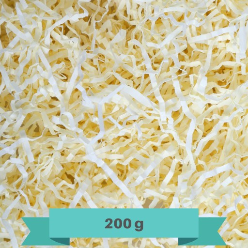 IDEALNA ILOŚĆ - Opakowanie kremowego papieru ciętego 200g z długimi paskami o szerokości 2-3 mm. Ten lekki materiał jest idealnym rozwiązaniem do zabezpieczenia, przechowywania i transportu cennych przedmiotów. Każda paczka pociętego papieru jest pakowana próżniowo, dzięki czemu otrzymujesz małe opakowanie z dużą ilością zawartości.