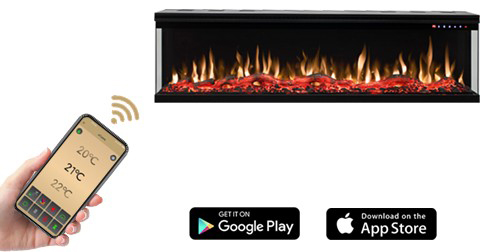 Prezentowany kominek elektryczny jest sterowany za pomocą aplikacji mobilnej! Oczywiście możecie również używać wszystkich funkcji, korzystając z wygodnego panelu dotykowego. Dostępna na urządzeniach z Android i iOS. Wszystkie funkcje kominka dostępne z poziomu telefonu. Naszą aplikację można pobrać z Google Play oraz Apple Store wyszukując "AFLAMO".