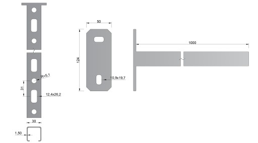 - Długość wspornika: 1000 mm