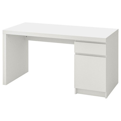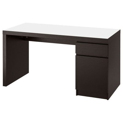Podkładka z tej aukcji przykrywa cały blat biurka wielkości 140x65cm. Tak prezentuje się na biurku Malm w tych wymiarach w kolorze białym czarnybrąz i dąb.
