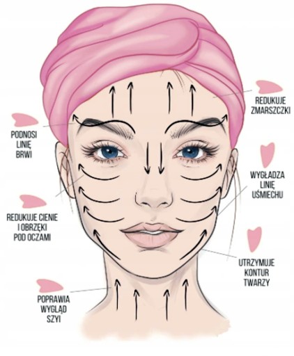 - działa przeciwzmarszczkowo, liftinguje, poprawia owal twarzy