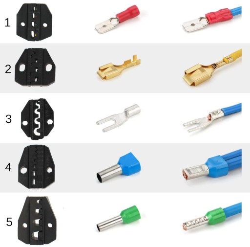SZCZYPCE Z WYMIENNYMI 5 MATRYCAMI DO ZACISKANIA KONEKTORÓW + WIELOFUNKCYJNY ŚCIĄGACZ DO IZOLACJI