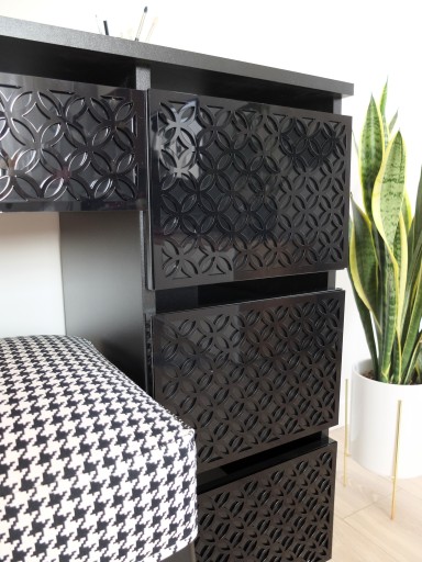 Biurko wyposażone jest w 4 bardzo pojemne szuflady, do których zmieścisz również wyższe kosmetyki.