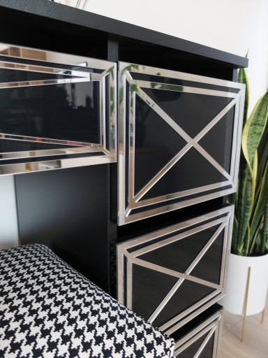 TOALETKA podsiada lustrzany dekor na froncie szuflady.