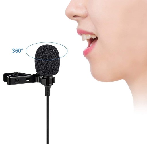 Mikrofon krawatowy pozwala rejestrować dźwięk wysokiej jakości. Mikrofon typu pojemnościowego, zakresie zbierania 360 stopni, o dużej czułości i szerokim paśmie przenoszenia.