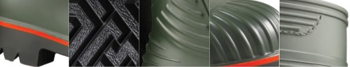 Wysoki bieżnik chroni przed ścieraniem. Buty posiadają doskonałą odporność na oleje i tłuszcze mineralne, zwierzęce i roślinne oraz środki dezynfekujące, obornik i inne substancje chemiczne. Buty są testowane i certyfikowane zgodnie z normą EN ISO 20345: 2011.