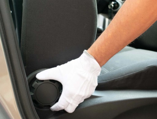 - Odświeżacz umieść za siedzeniem i naciśnij zawór. Okna i drzwi powinny być szczelnie zamknięte