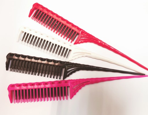 Profesjonalny trój rzędowy grzebień fryzjerski wykonany z trwałego tworzywa, który jest specjalnie zaprojektowany dla salonów z myślą o trwałości.
