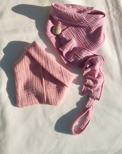 - Dwustronna chustka, bandamka pod szyję, wykonana z połączenia 2 warstw 100% bawełna muślin organic miękka i idealna dla delikatnej skóry dziecka