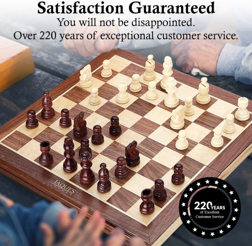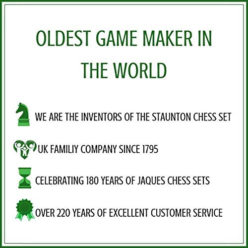 ORYGINALNE ZESTAWY SZACHÓW JAQUES STAUNTON - Nie akceptuj żadnych substytutów. Jaques produkuje również zestaw szachów i plansze Staunton z najlepszych kolekcjonerów ZESTAW SZACHOWY DO TRENINGU MÓZGU DZIECI - CZĘSTO NAŚLADOWANY - NIGDY NIE REPLIKOWANY - Ręcznie składane zestawy szachów i szachownica w kombinacji w szafce, aby spełnić wszystkie wymagania dotyczące zestawów szachowych DLACZEGO JAQUES? CZY WIESZ, ŻE - Jaques z Londynu wynalazł zestaw szachowy Staunton. Tworzą najlepsze zestawy szachowe od ponad 150 lat. WSZYSTKO ZAWARTE - WYJĄTKOWA WARTOŚĆ - Drewniane szachy Kompletne zasady i kompletne figury do gry w szachy - Szachy są odpowiednie dla DZIECI w wieku od 6 lat. GWARANTOWANA JAKOŚĆ - Angielska jakość OD 1795 - Ponad 220 lat