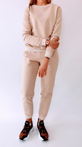 - Klasyczny z lekko dopasowaną bluzą bez kaptura oraz spodniami z kieszeniami