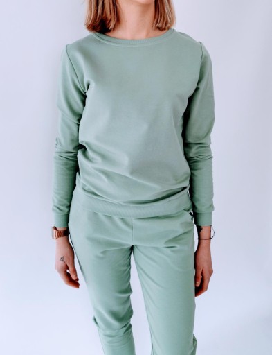 - Klasyczny z lekko dopasowaną bluzą bez kaptura oraz spodniami z kieszeniami