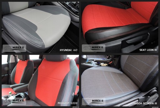 Pokrowce mogą być wykonane w całości z ekoskóry, w całości z alkantary lub w dowolnej konfiguracji obu materiałów. Materiały są podlaminowane gąbką, dzięki czemu pokrowce idealnie układają się na fotelach.