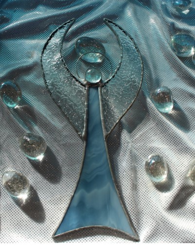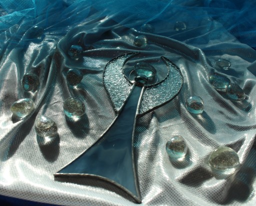 Szkło wycinane jest ręcznie i połączone ze sobą miedzią oraz cyną. Skrzydła wykonane są z bezbarwnego, karbowanego szkła, sukienka zaś z barwionego w masie szkła, które nie jest malowane. Specyficzne ukształtowanie i wybarwienie szkła powoduje, że nie istnieją dwa identyczne egzemplarze.