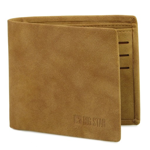 Poftfel męski BIG STAR ACCESSORIES. Wykonany z wysokiej jakości skóry ekologicznej. Posiada 2 kieszenie na banknoty, zasuwaną kieszeń na bilon, okienko np. na zdjęcie i 3 miejsca na karty.