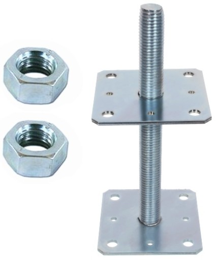 ✅Kotwa stalowa z regulowaną wysokością służąca jako mocowanie słupów. Wykonana z blachy stalowej oraz pręta gwintowanego, następnie poddana procesowi cynkowania elektrolitycznego w pasywacji białej.