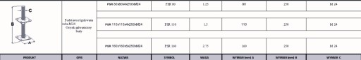 PODSTAWA SŁUPA REGULOWANA pręt m24*250mm 160x160mm