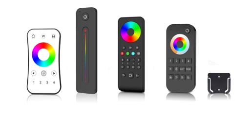 Pilot do LED za sprawą swojego kompaktowego kształtu idealnie leży w ręku i wygodnie się go obsługuje. Strefy wybiera się za pomocą przycisków. Pilot do taśm LED zasilany jest jedną baterią CR2032. Pilot posiada dotykowy regulator koloru.