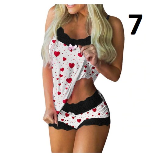 SEKSOWNA PIŻAMKA SATYNOWA KORONKA SPODENKI