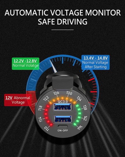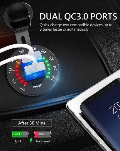 Ładowarkę USB QC 3.0 + Cyfrowy woltomierz ze skalą