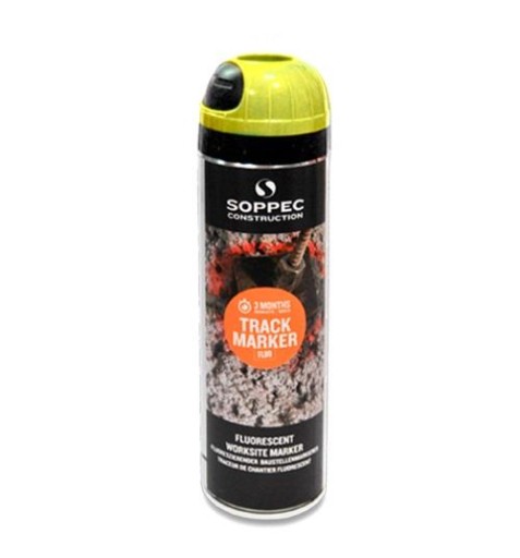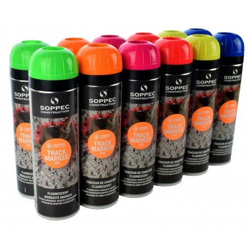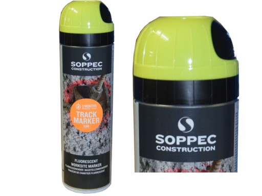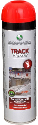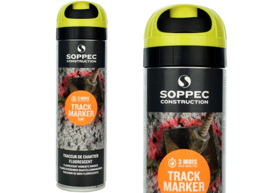 Track Marker firmy Soppec to farba fluorescencyjna w aerozolu przeznaczona do wykonywania oznaczeń na placach budowy oraz do znakowania przy pracach geodezyjnych i pomiarowych. Z jej pomocą wykonamy widoczne, odblaskowe oznaczenia, podkreślając niebezpieczne strefy, zaznaczając pole pod wykop lub znacząc dokonane pomiary. Dzięki farbie Track Marker niewielkim kosztem, znacznie zwiększymy bezpieczeństwo na budowie i usprawnimy pracę. Aerozol stosowany jest w sytuacjach gdy długotrwałe oznaczenia nie są pożądane, utrzymując się na znaczonym obszarze do 3 miesięcy.