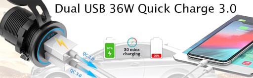 USB QC 3.0 БЫСТРОЕ ЗАРЯДНОЕ УСТРОЙСТВО ВКЛ./ВЫКЛ. РАЗЪЕМ СЕНСОР.