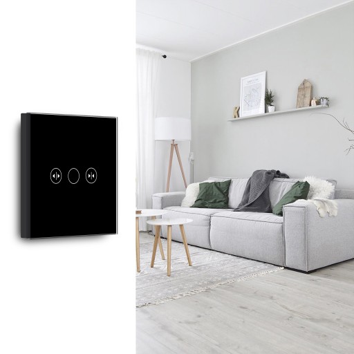 Włącznik dotykowy szklany do rolet, żaluzji, karniszy elektrycznych z panelem szklanym w kolorze czarnym i podświetleniem LED