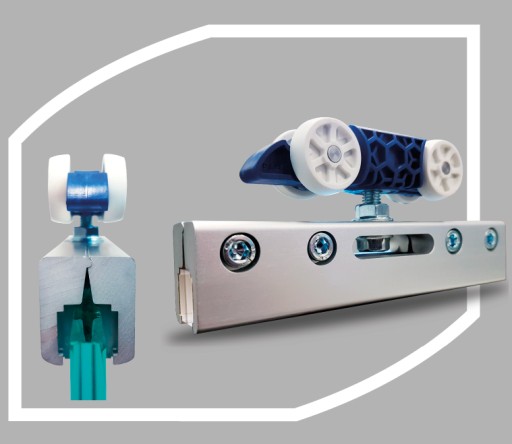 Udźwig do 100 kg na skrzydło. Bezawaryjna eksploatacji przez długie lata. Konstrukcja stalowa ze stali ocynkowanej, która jest wielokrotnie gięta- zwiększa to jej sztywność. System ten jest wyjątkowo trwały, z wyjmowaną szyną aluminiową, wyposażoną w okucia jezdne najnowszej generacji - okucia SLX, wyposażone w łącznik elastomerowy, kółka jezdne o skośnym profilu z wysokiej jakości niezależnymi łożyskami ślizgowymi. Dzięki stoperowi regulowanemu po zamontowaniu drzwi istnieje możliwość regulacji głębokości skrzydła w kasecie. Jest to system prosty w montażu, w którym można zamontować samodomykacz.