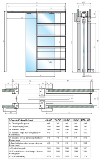 - konstrukcja stalowa- kaseta drzwi przesuwnych szklanych