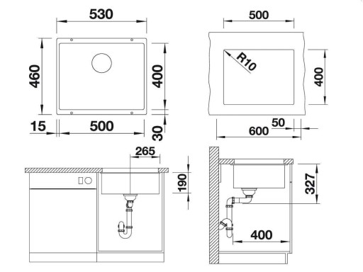 Wymiary zlewozmywaka:543/456 mm