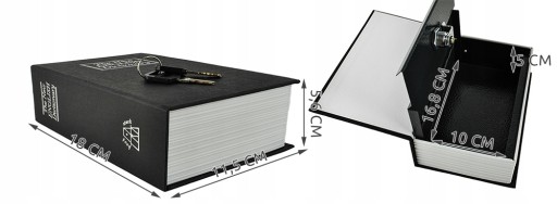 - STALOWA KASETKA WEWNĄTRZ - zewnętrzna obudowa świetnie imituje prawdziwą książkę, a w środku znajduje się wykonane ze stali pudełko, które jest trudne do sforsowania nawet w przypadku rozpoznania, że jest to sejf