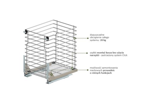 - system mocowania kosza wpinany na click bez użycia narzędzi