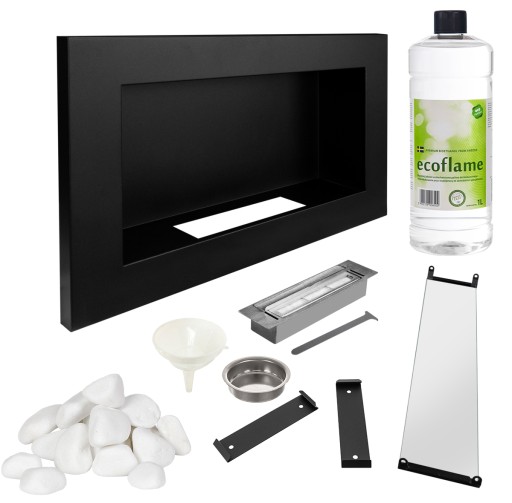 Polskiej produkcji biokominek do zawieszenia na ścianie lub do zabudowy w ścianie (istniejącym otworze) lub do montażu w zabudowie (także wykonanej z płyty GK).
