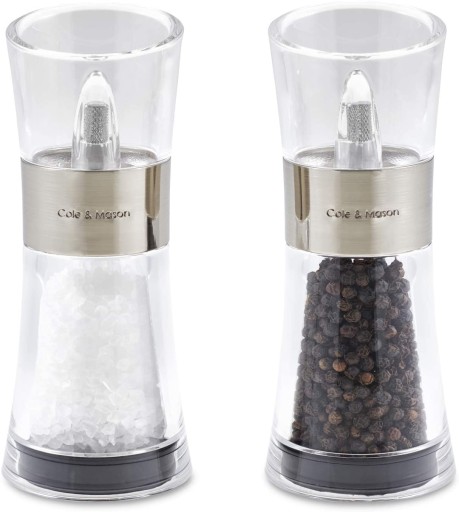 Każdy z dwóch elementów kompletu stoi na stole spodem do góry, dzięki czemu żadne pozostałości mielonego pieprzu bądź soli nie spadną na obrus.