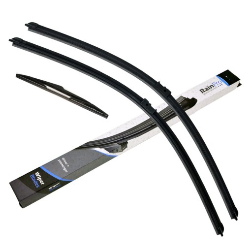 Zestaw oryginalnego kompletu wycieraczek przód + tył brytyjskiej firmy RAIN-PRO (QUALITY - HQ AUTOMOTIVE)
